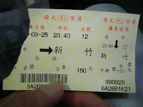 車上旅客不多, 不到十位。我好奇的看著窗外, 看著我所不知的道路, 有著滿滿的新鮮感。大約一小時的車程, 我抵達台中火車站了。趕緊找車坐回新竹, 火車站, 哇賽!購票口滿滿的都是人, 我最討厭排隊了, 完全不想排, 到隔壁的國光看看, 有票有車到新竹, 趕緊買了張到新竹的票, 到指定的門口等車。