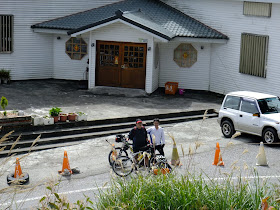 雖然台灣地理中心點就在對面, 但是我們卻沒有時間好好的進去逛一逛, 在我們快要吃飽的同時, 和我們一起騎車的另一群單車騎士, 也有一位已經下到這裡來了。看到一起騎車的車友也平安的完成這次的挑戰, 也替他高興, 因為我們就是一群說著同樣話語的人阿!他們是從台北來的, 打算搭乘國光號回台北, Lance 則是要到台中, 那我勒?