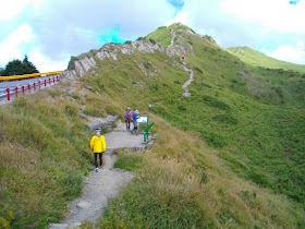 下圖是合歡山北/西峰登山口, 剛好遇到一群要健行的遊客, 據說要花 5 小時左右的腳程,