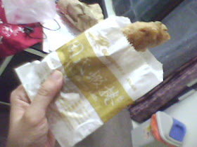 慶幸自己來的巧, 不用大排長龍。等了一陣不算短的時間後, 拿著蝦捲, 離開閃人。