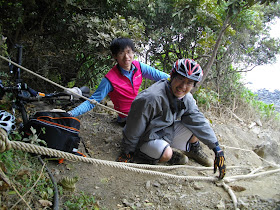 原因呢?其中之一是因為這已經不是什麼 off road 行程, 單車對此次的古道一行, 只能說是一件大行李, 抬著一件大行李, 然後在落差大約 100 公尺的地方, 拉著繩子, 往上或是往下移動, 這到底有什麼意義, 很神勇嗎?我相信一定有其他更有意義的神勇挑戰比這好玩多了。這條古道縱使沒用單車越過, 也絕對不會有遺憾的感覺。