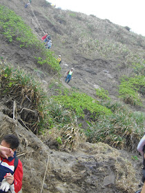 終於讓我們捱到下坡處了。往下看了看。「媽呀!這要怎麼下去阿?」 從上坡處到這裡的下坡處,