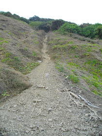 我趕忙拉起了頭巾, 冷風無情的拍打著我的臉, 只要讓這股頑皮的海風鑽進身體, 身體馬上起了物理變化, 體溫直線下降, 很不舒服。我現在只希望趕快完成這條古道, 回到正常的路面。