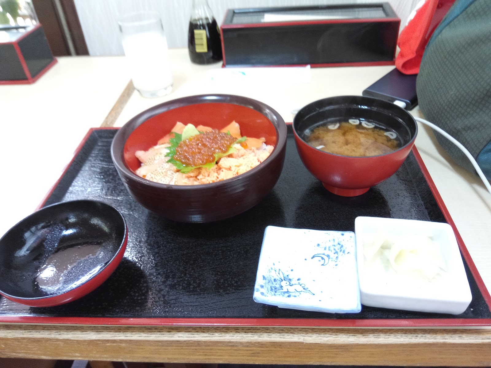 從江島電鐵的江之島站到江之島大概要走 30 分鐘, 沿途會經過一些商店, 當然也有用餐的店家, 我看了其中比較不用等太久的, 走了進去, 點了一個很像鮭魚的丼飯, 但直到入口我才知道並不是鮭魚, 不過沒差, 好吃就好, 這間有免費的飲料可以享用, 座位也算寬敞。