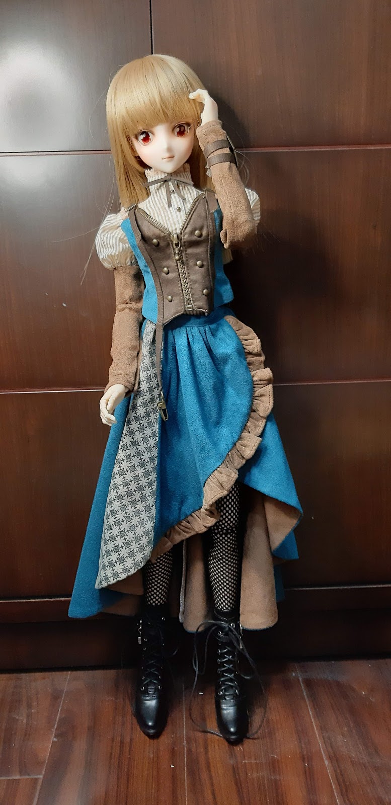 這件的裙子是非對稱的設計, 我個人偏愛非對稱的設計多一些, 看起來蠻特別的。前面也提到, 一開始我並沒有特別喜愛這套娃衣, 會購買完全是因為拉鍊馬甲, 我喜歡拉鍊的設計, 但實際套上之後, 覺得這套娃衣還蠻好看的, 甚至覺得比第 1 套的グレンチェックロングワンピセット還要好看。
