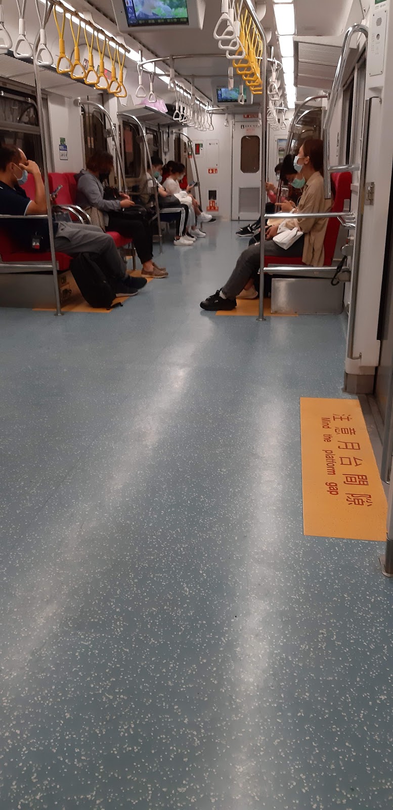 在搭乘火車時, 我也會儘量到沒人的地方, 也會戴上防疫帽 (350nt); 若沒有防疫帽, 也可以戴上安全帽。